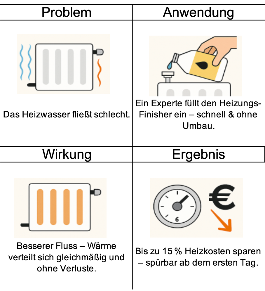 👉 Der Heizungs-Finisher bringt das System wieder ins Gleichgewicht – wie eine Blutdrucktablette für Ihre Heizung.